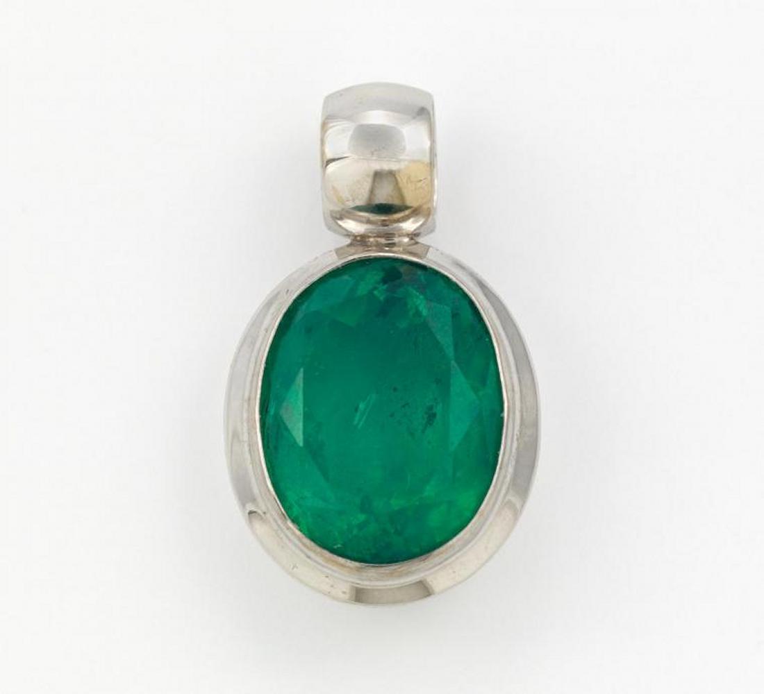 750/- Weißgold, Gewicht: 12,4g. 1 oval facettierter Smaragd ca. 11,97ct, Kolumbien.