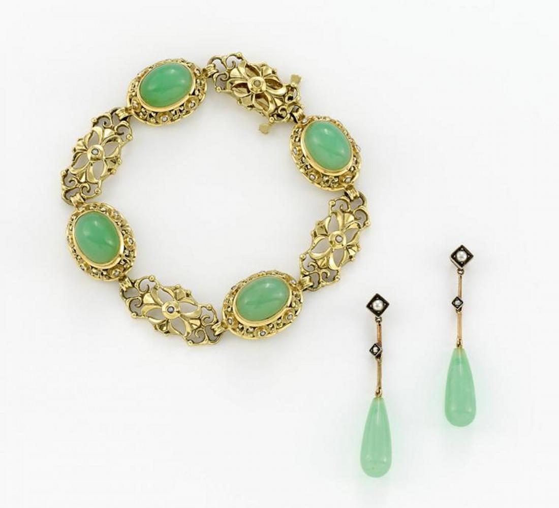 SET: CHRYSOPRAS-ARMBAND UND OHRHÄNGER.