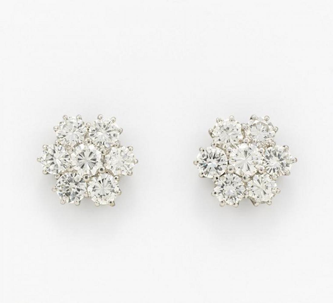 750/- Weißgold, Gewicht: 3,5g. D.ca. 1,2cm. 14 Brillanten zus.ca. 3,00ct TW(F-G) VVS.