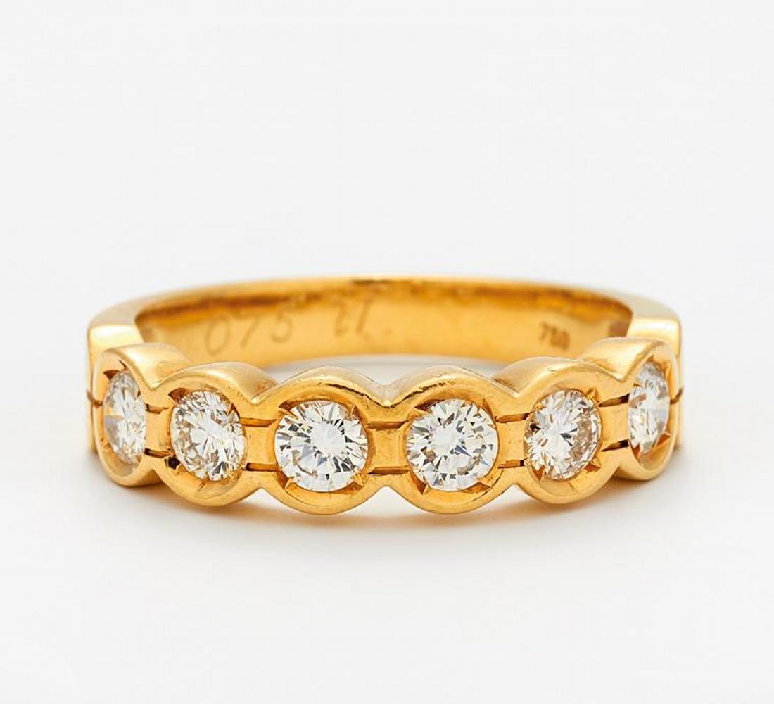 750/- Gelbgold, gestempelt, Gewicht: 5,5g. EU-RM: 55. 5 Brillanten.
