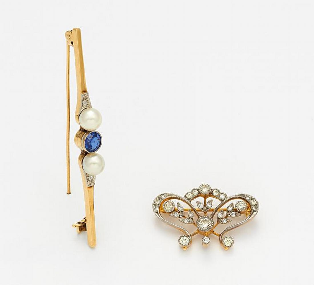 KONVOLUT: ZWEI DIAMANT-BROSCHEN.