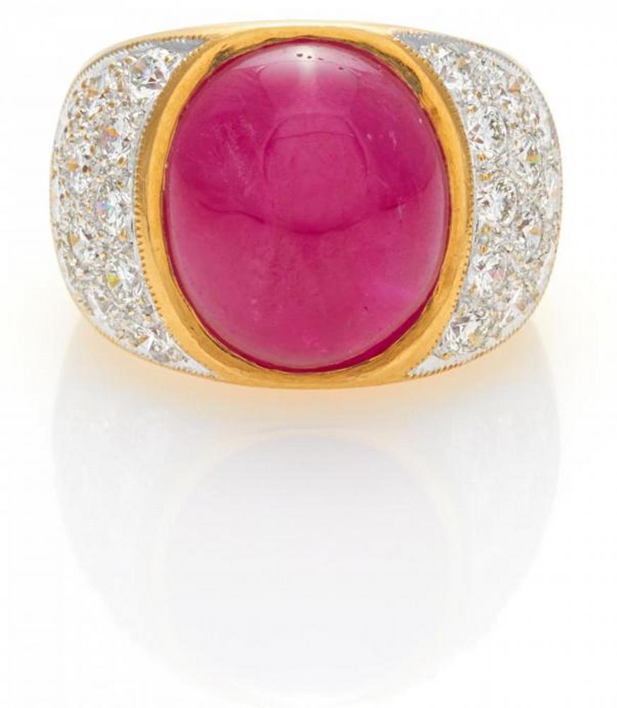 Edelsteine: 1 ovaler, synthetischer Rubin-Cabochon ca. 12,39ct..