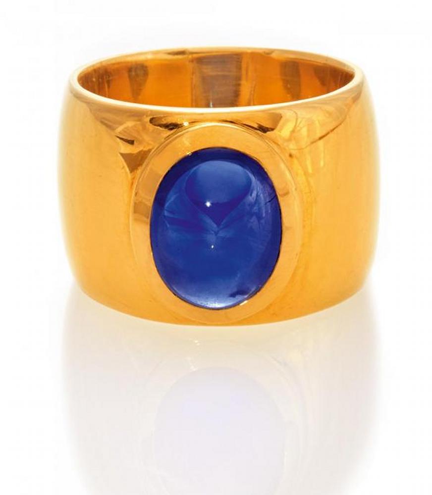 Edelsteine: 1 ovaler Sternsaphir-Cabochon ca. 3,25ct..
