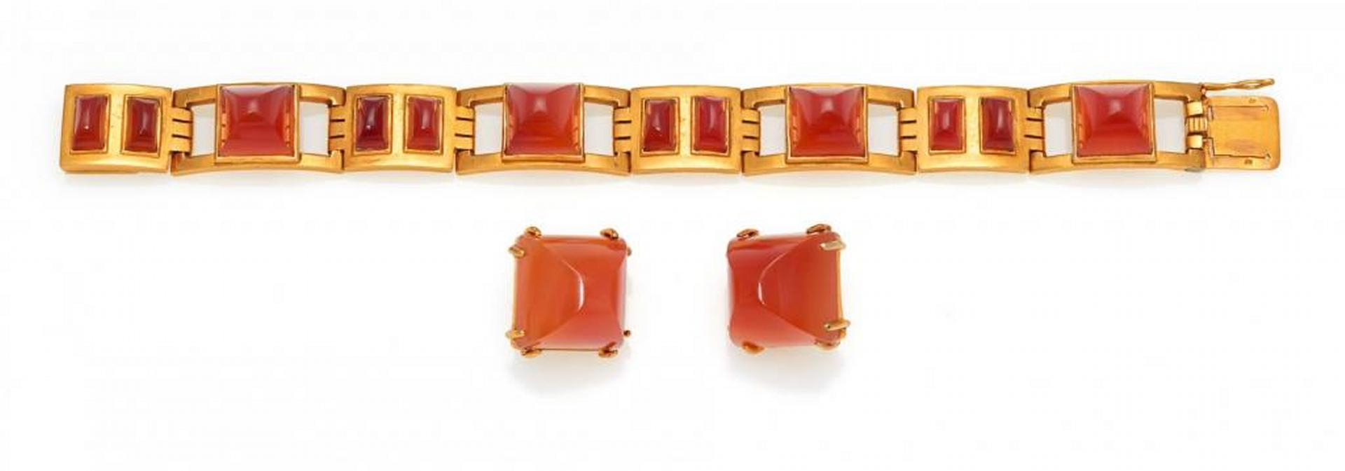 SET: KARNEOL-ARMBAND UND OHRCLIPS.