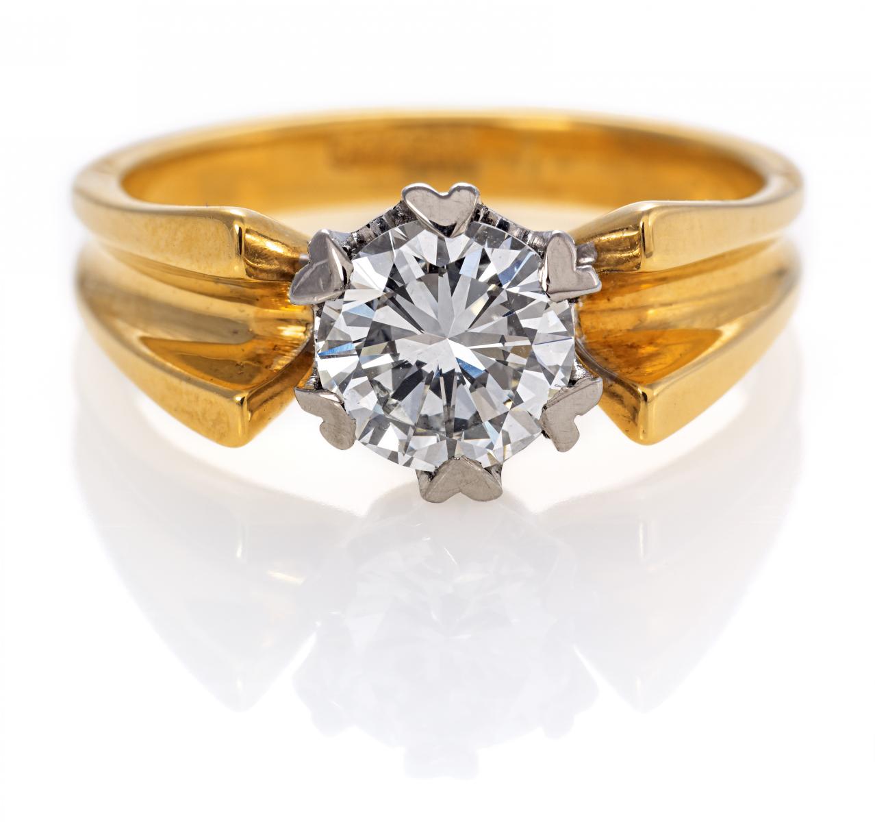 585/- Gelb-/Weißgold, Gesamtgewicht: 6,5g. EU-RM: 55,5. 1 Brillant ca. 1,2ct TCr(I) VVS1.