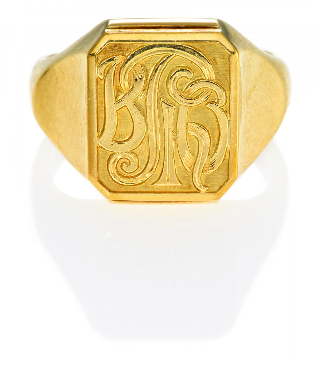 585/- Gelbgold, Gesamtgewicht: 17,9g. EU-RM: 62. Ringtop: ca. 1,5 x 1,3cm.
