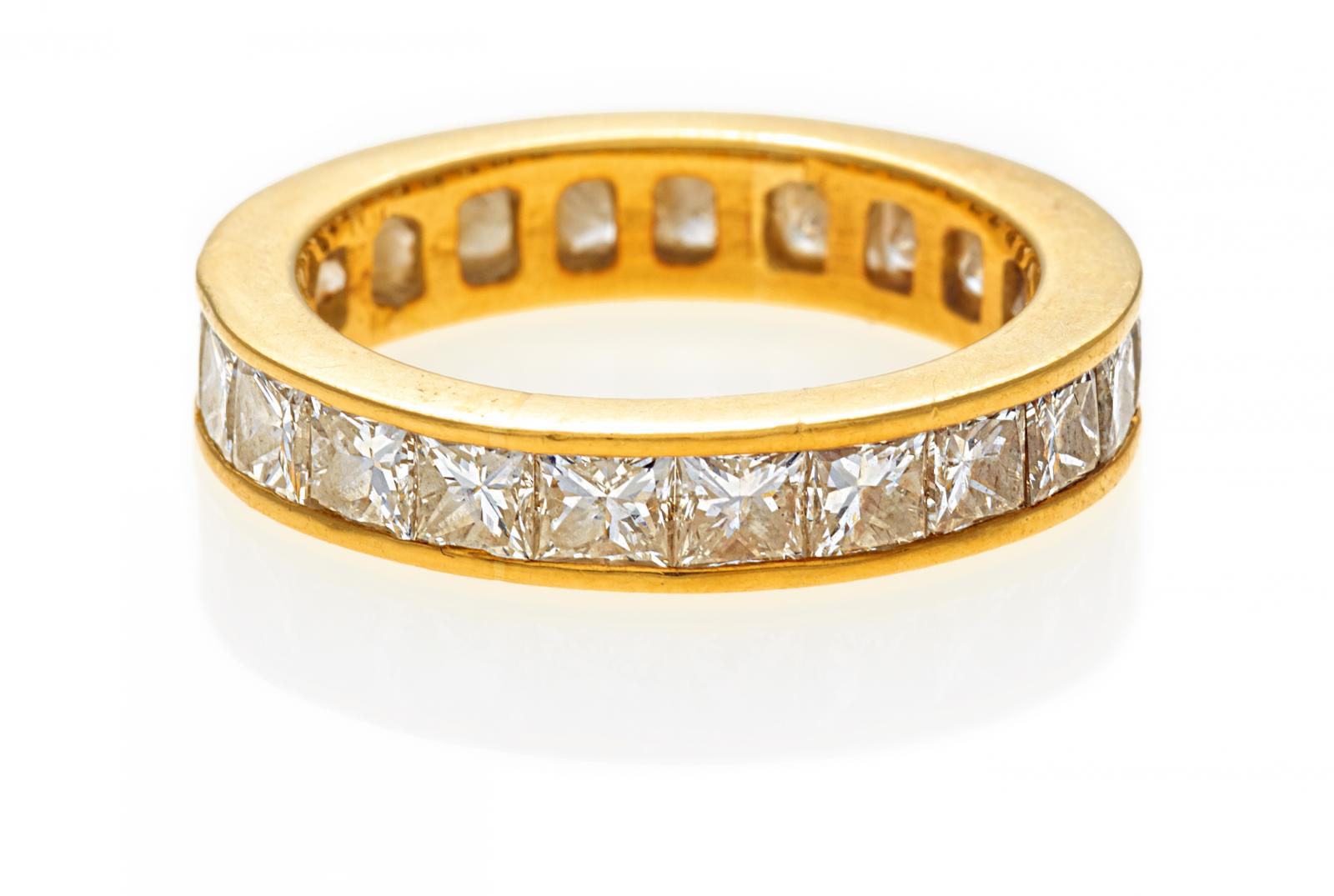 750/- Gelbgold, Gesamtgewicht: 5,5g. EU-RM: 56. 21 Diamanten im Princess Cut zus.ca. 3,9ct.