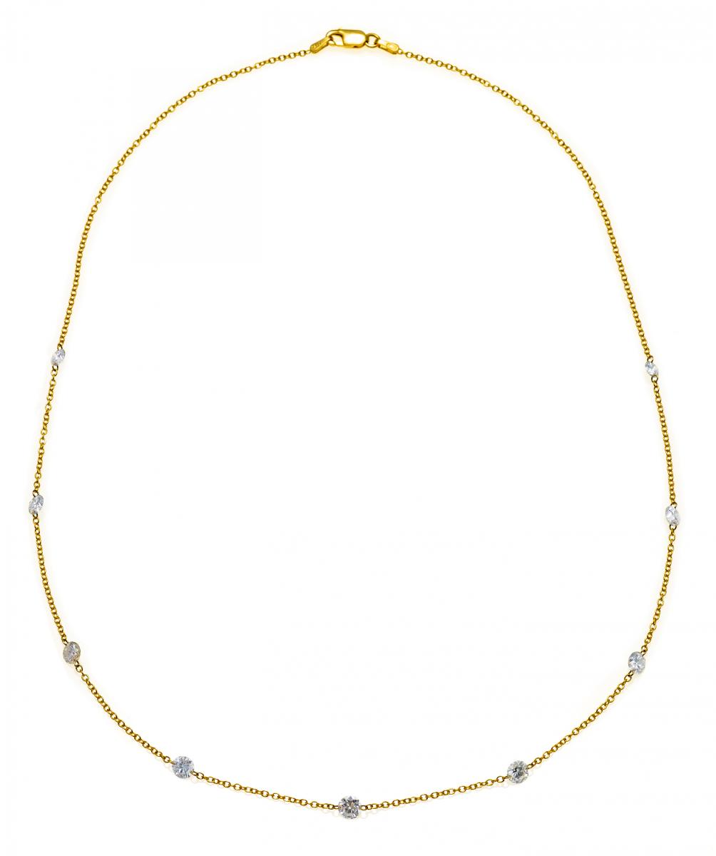 585/- Gelbgold, Gesamtgewicht: 2,0g. L.ca. 43,5cm. 9 Brillanten zus.ca. 2,1ct TCr(I) VS-SI.