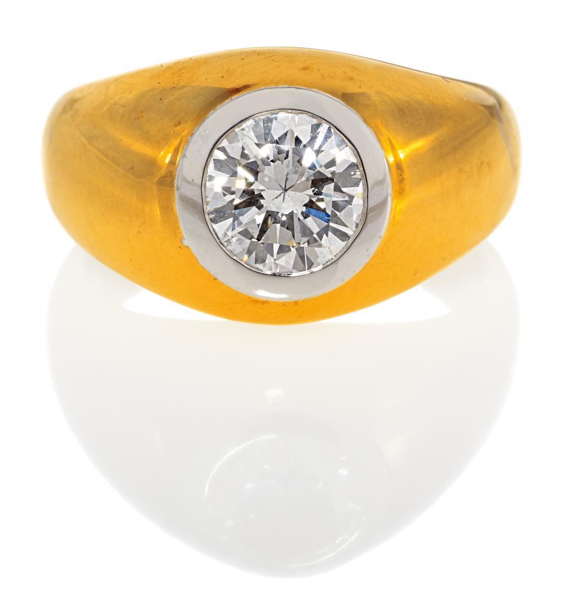 585/- Gelbgold, teils rhodiniert, Gesamtgewicht: 16,0g. EU-RM: 58. 1 Brillant ca. 1,59ct Ri+(D) VS2.