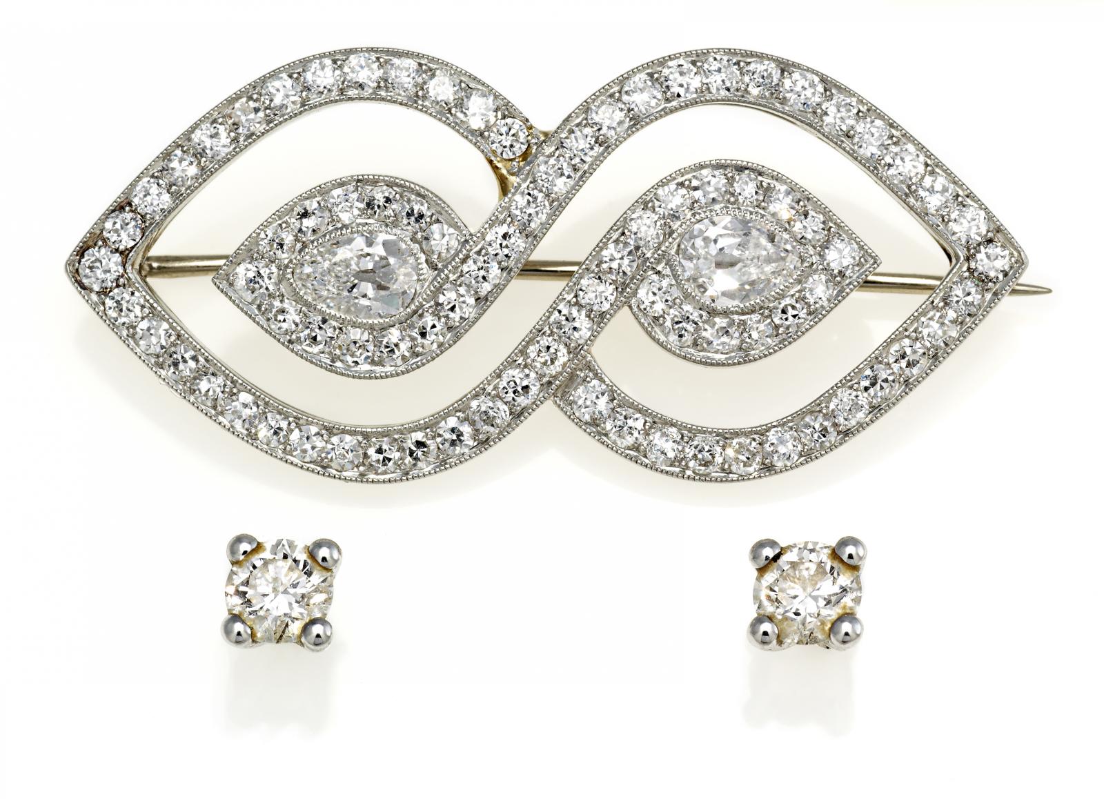 SET: DIAMANT-BROSCHE UND OHRSTECKER.