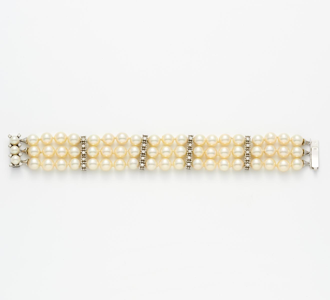 Org. Substanzen: vielzählige Akoya-Zuchtperlen, rund, D.ca. 8,1mm, weiß-creme.