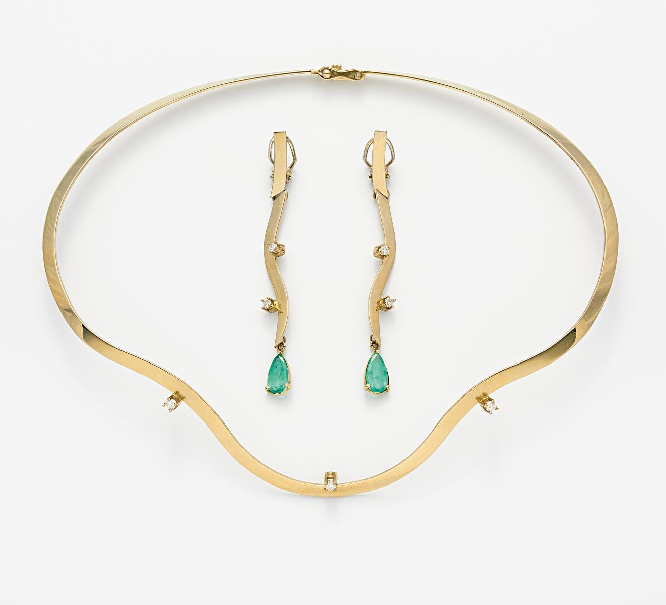 SET: DIAMANT-COLLIER UND SMARAGD-DIAMANT-OHRCLIPS.
