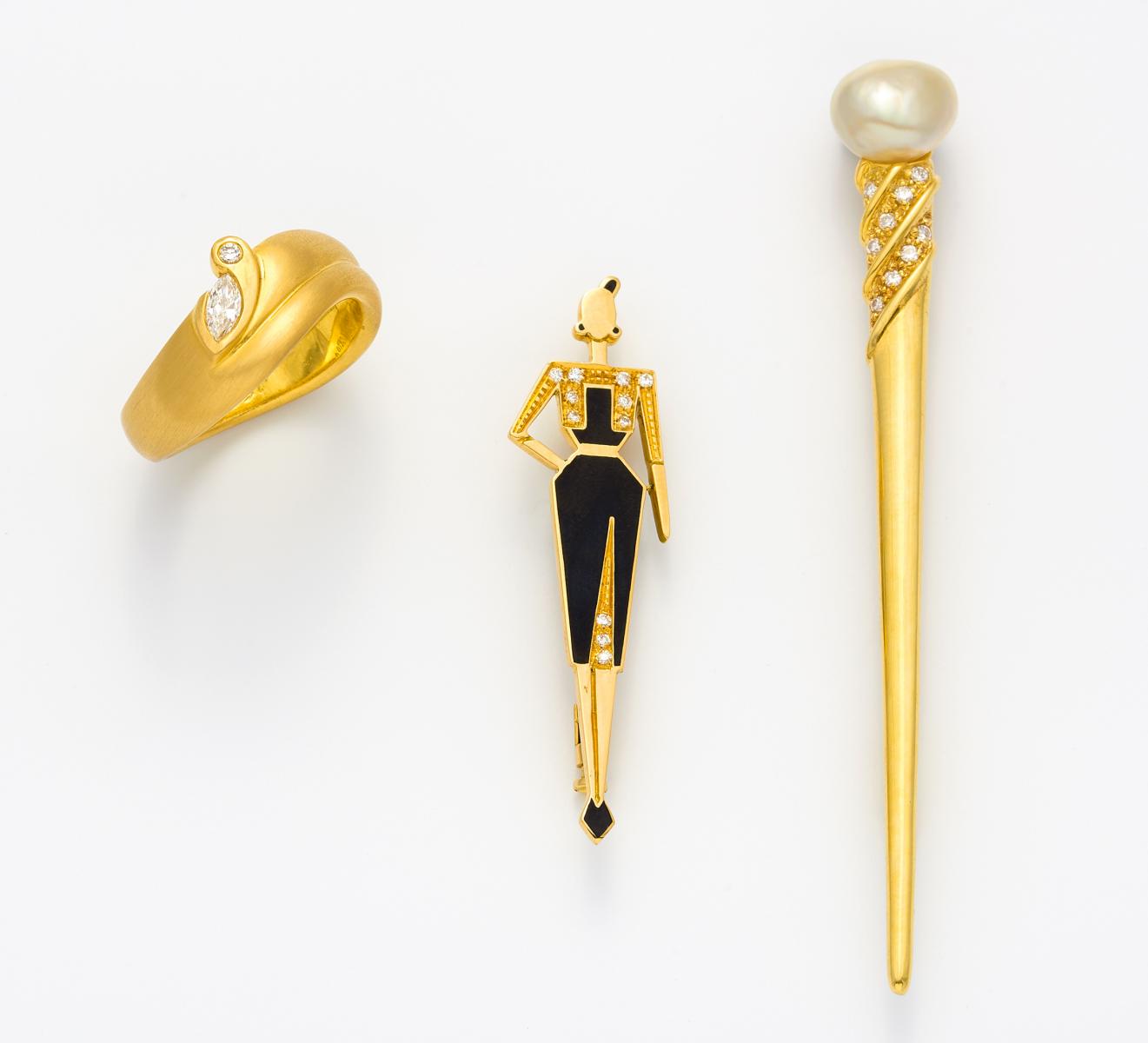 KONVOLUT: DIAMANT-RING UND ZWEI BROSCHEN.