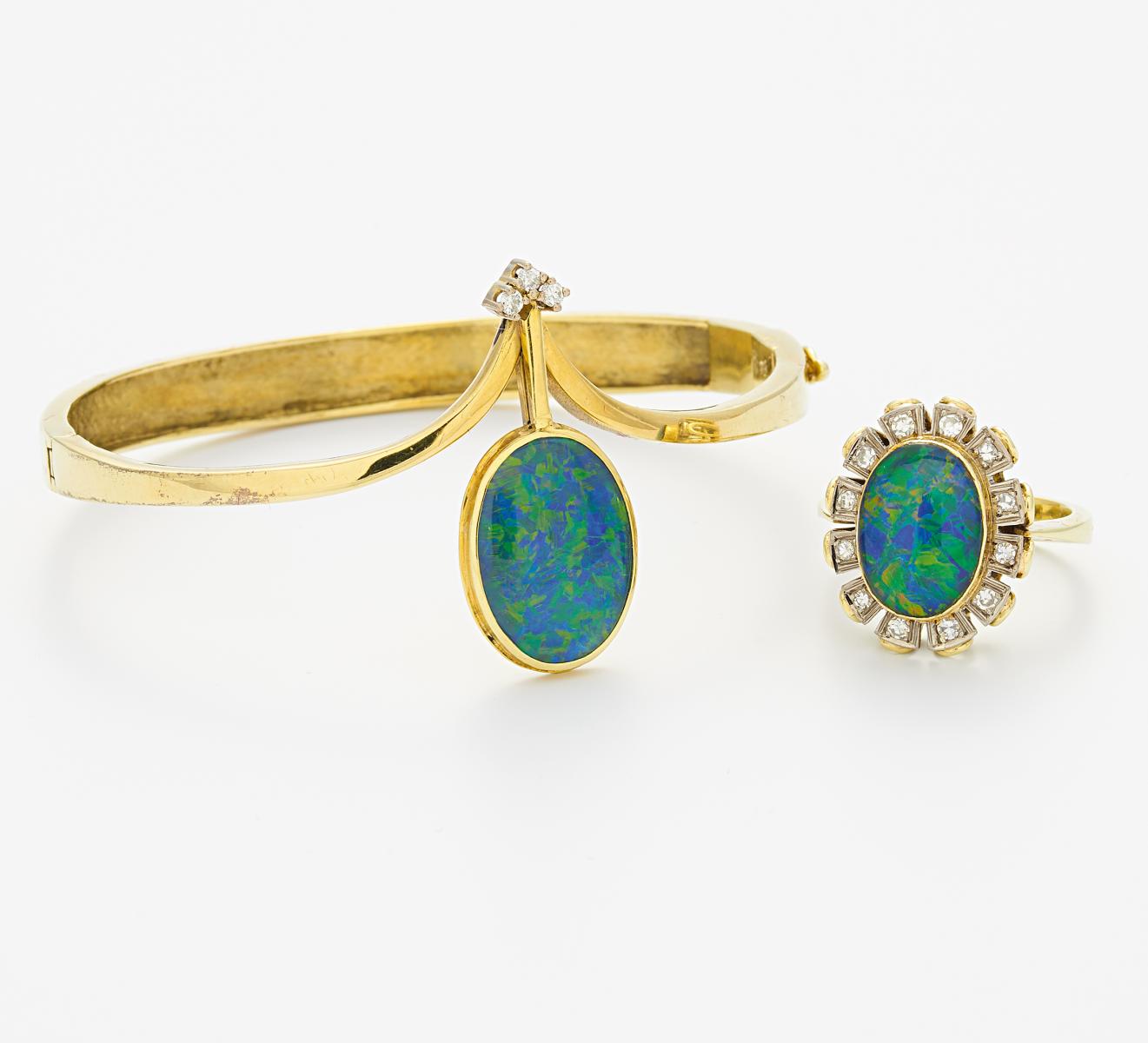 SET: OPAL-DIAMANT-RING UND ARMSPANGE.