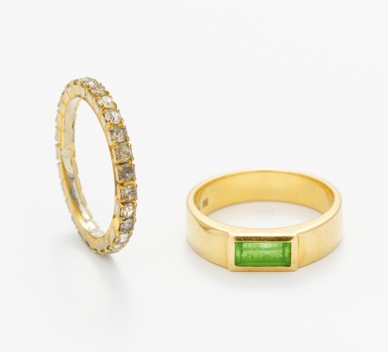 Material: 1. 750/- Gelbgold, gestempelt, 2. goldfarben.
