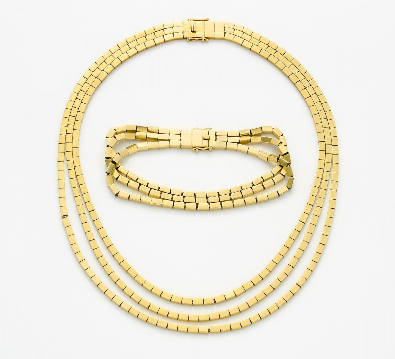 Maße: Collier: L.ca. 40,0-46,0cm; Armband: L.ca. 20,2cm.