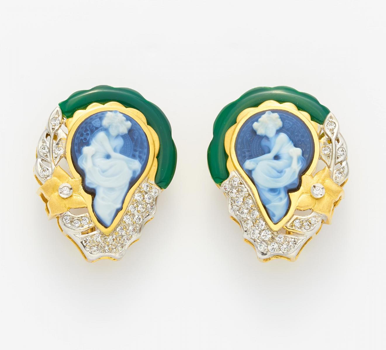 Edelsteine: 2 Achat-Elemente, 2 Achat-Kameen mit Frau..