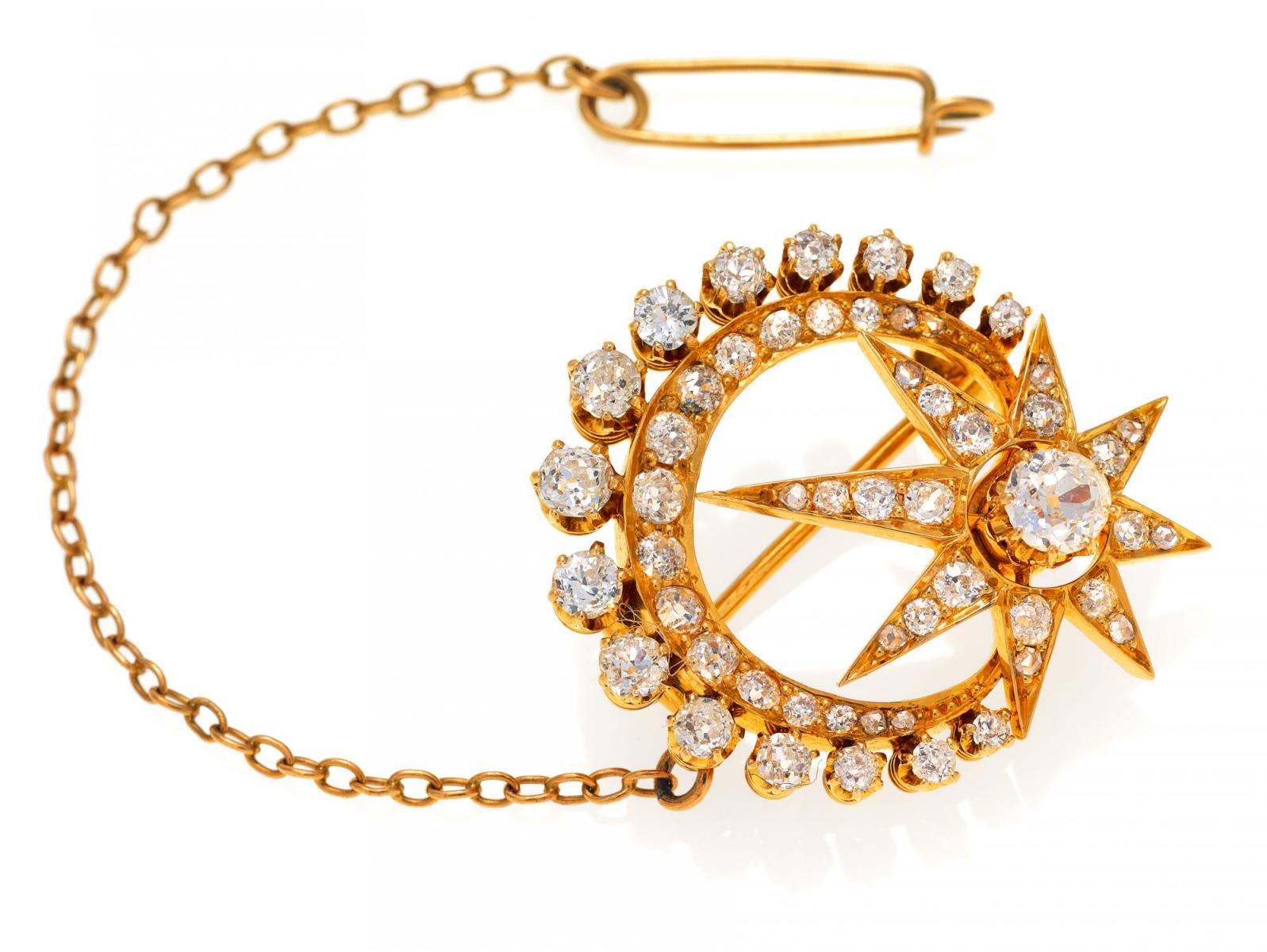 750/- Roségold, gestempelt, Gesamtgewicht: 10,0g. D.ca. 3,1cm. Ca. 51 Diamanten im Alt- und Rosenschliff zus.ca. 3,2ct TCr-Cr(I-J) VS-SI2.