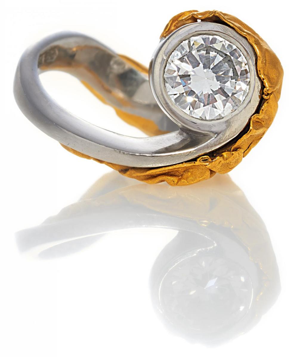950/- Platin, 900/- Gelbgold, Meisterpunze, Gesamtgewicht: 18,7g. EU-RM: 51. 1 Brillant ca. 1,6ct TW(G) VVS2.