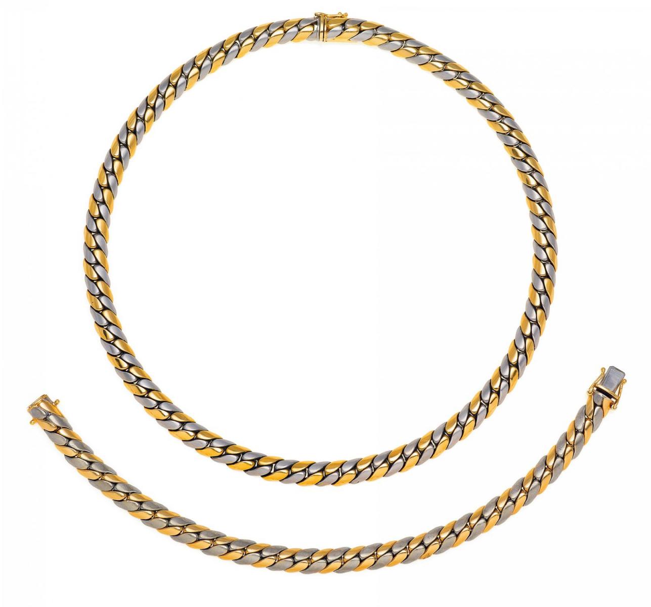 585/- Weiß-/Gelbgold, gestempelt, Gesamtgewicht: 109,0g. L.ca. 40,5cm, ca. 19,5cm.