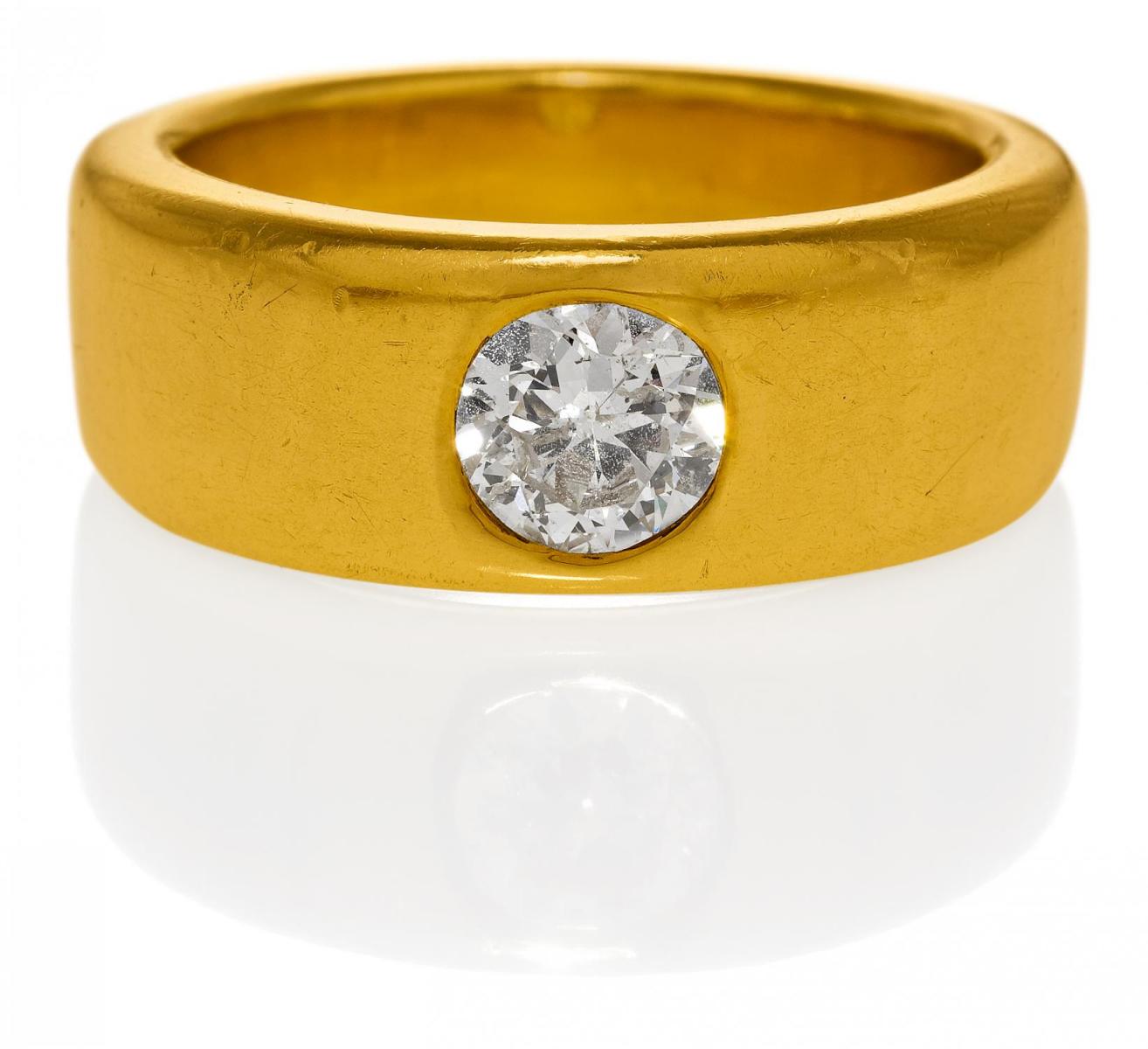 750/- Gelbgold, gestempelt, Gesamtgewicht: 24,5g. EU-RM: 62,5. 1 Brillant ca. 1,0ct W(H) P1.