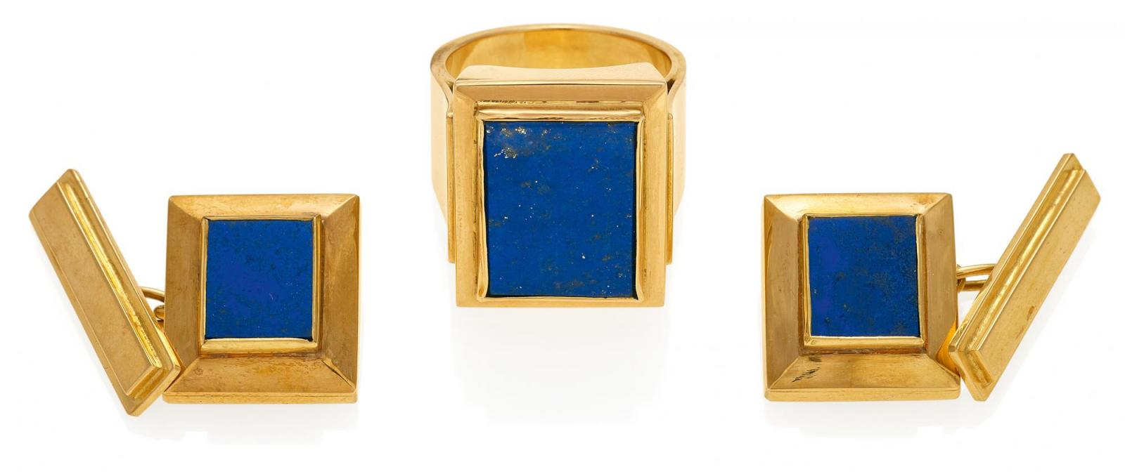 LAPISLAZULI-SET: RING UND MANSCHETTENKNÖPFE.