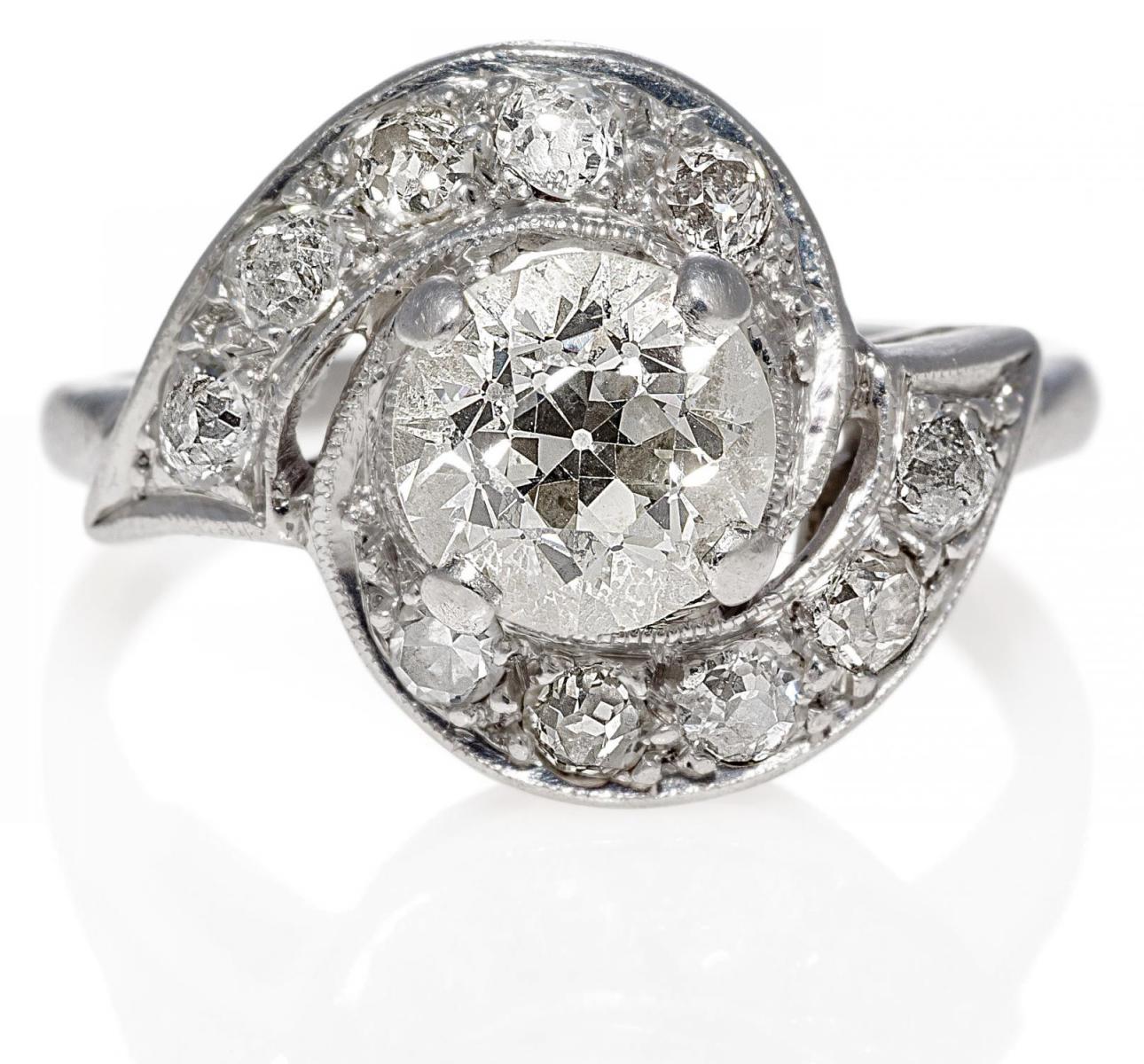 Diamanten: 1 Altschliff-Diamant ca. 1,3ct TCr(I) VS2, 10 Diamanten im 8/8- und Altschliff zus.ca. 0,6ct..
