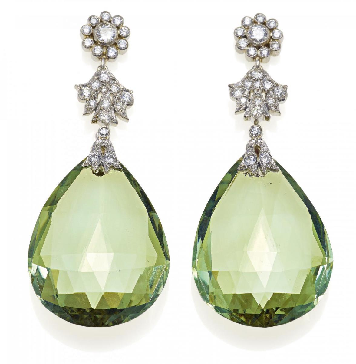 Edelsteine: 2 facettierte Prasiolith-Tropfen D.ca. 29,5 x 21,0mm..