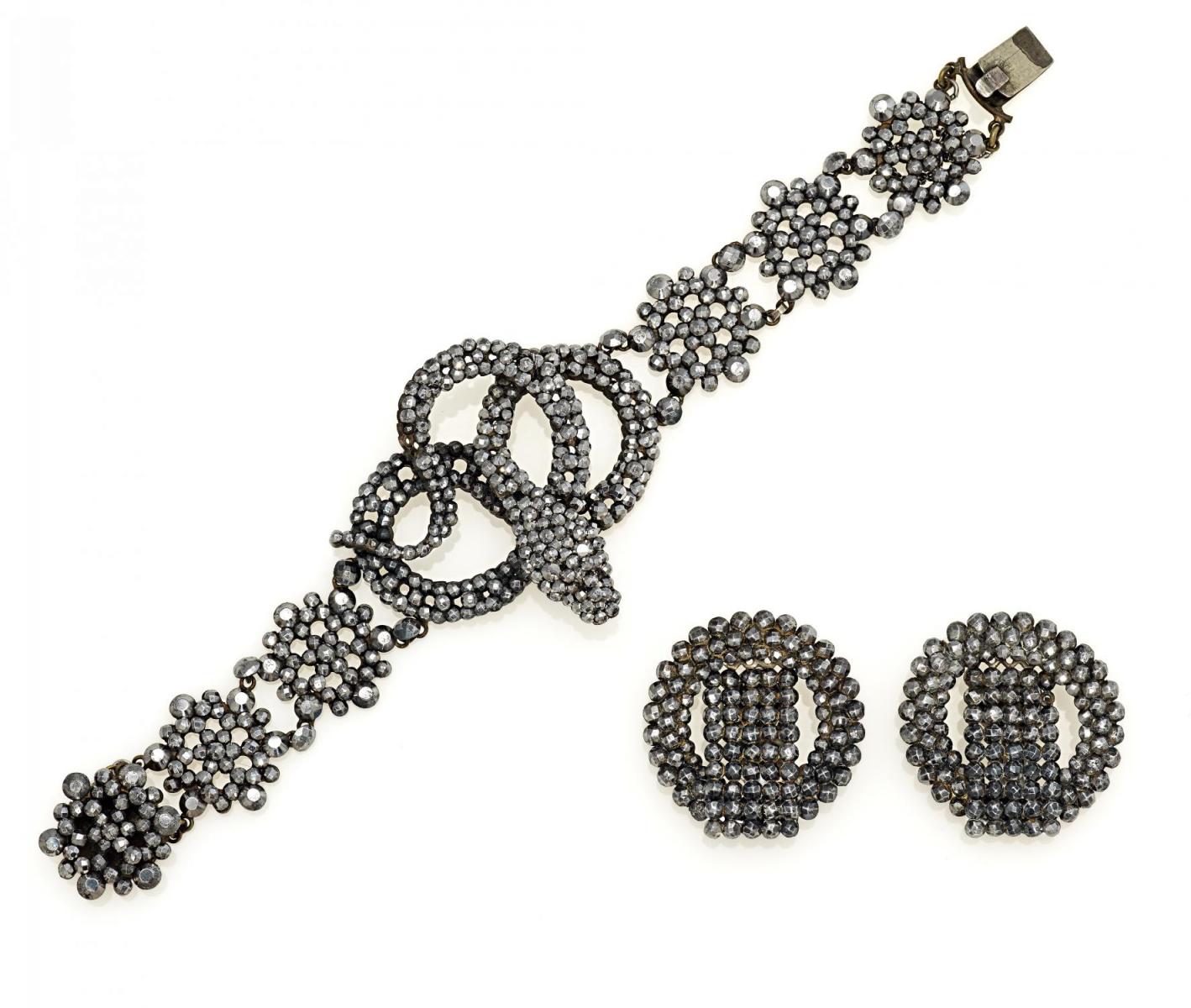 CUT STEEL-ARMBAND UND OHRCLIPS.