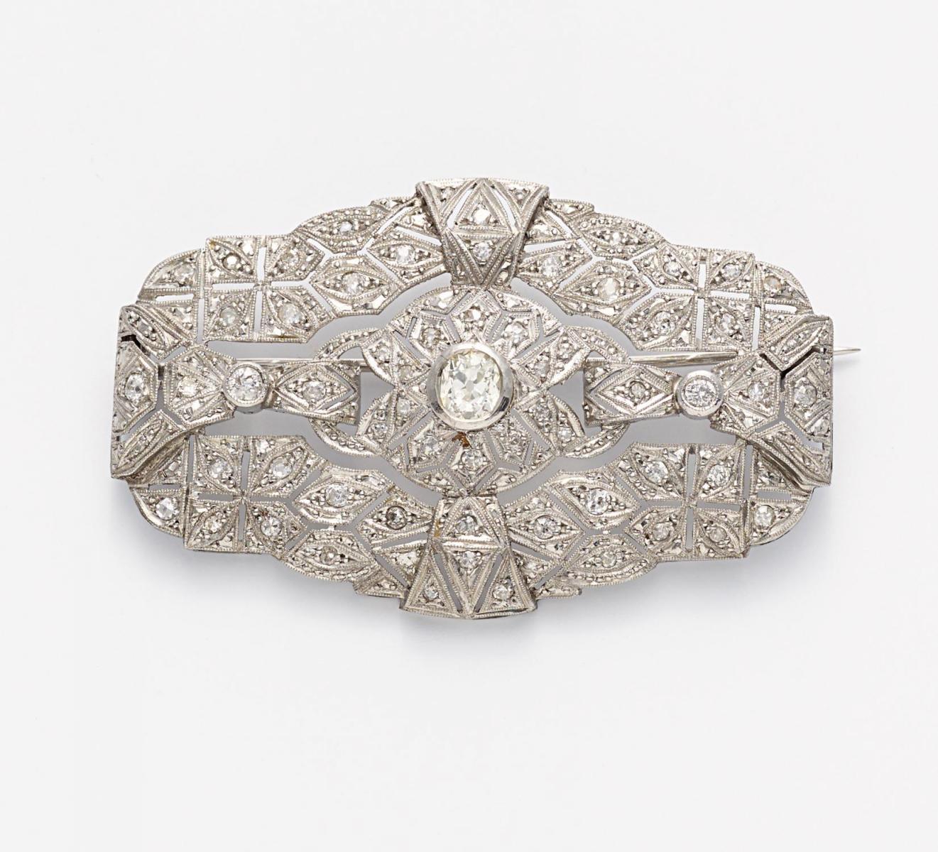 Beschreibung: Plaque-Brosche des Art Décos. Zinnlötstellen rückseitig.