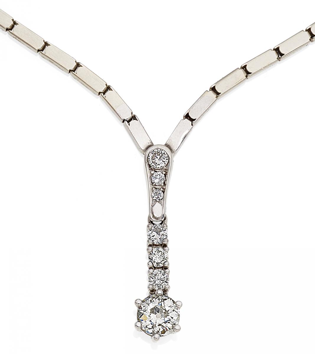 750/- Weißgold, Gesamtgewicht: 16,1g. L.ca. 43,0cm. 7 Diamanen im Alt- und Brillantschliff zus.ca. 1,2ct W(H) VVS-SI2.