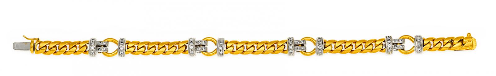 750/- Gelb-/Weißgold, Gesamtgewicht: 35,5g. L.ca. 19,0cm. 48 Brillanten zus.ca. 0,2ct.