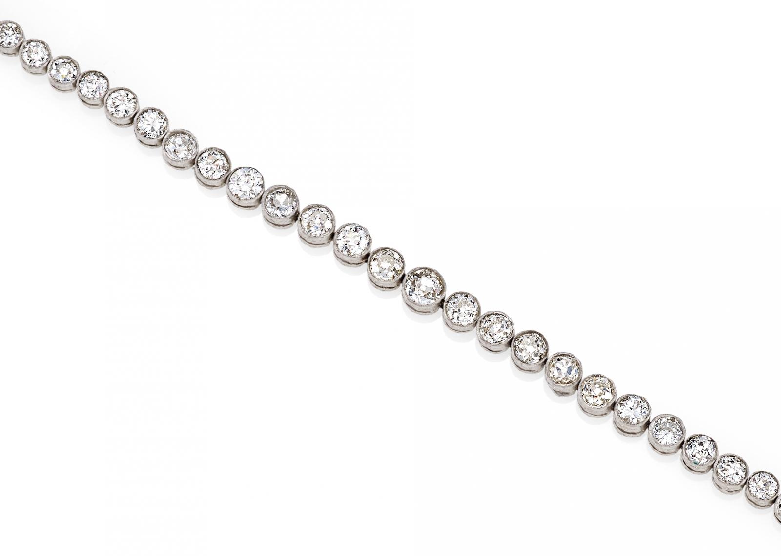 585/- Gelbgold, Platin, Gesamtgewicht: 15,9g. L.ca. 18,0cm. 39 Altschliff-Diamanten zus.ca. 5,6ct TCr-Cr(I-J) VS-P1.