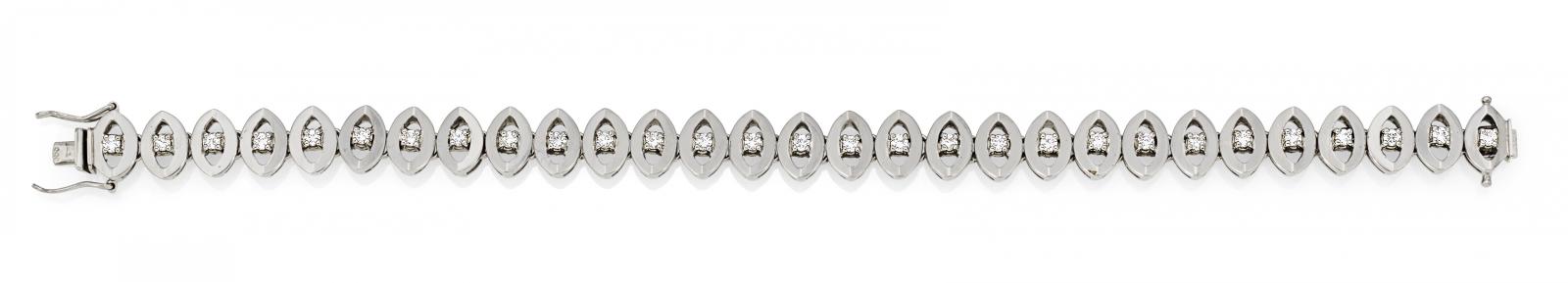 585/- Weißgold, Gesamtgewicht: 36,0g. L.ca. 18,5cm. 29 Brillanten zus.ca. 1,1ct W(H) VVS-VS.