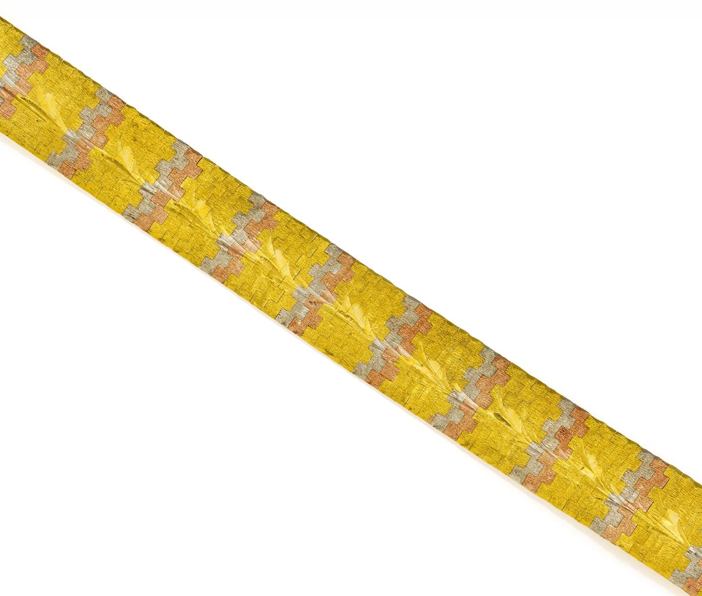 750/- Gelb-/Weiß- und Roségold, Gesamtgewicht: 41,5g. L x B=ca. 18,5 x 1,8cm.