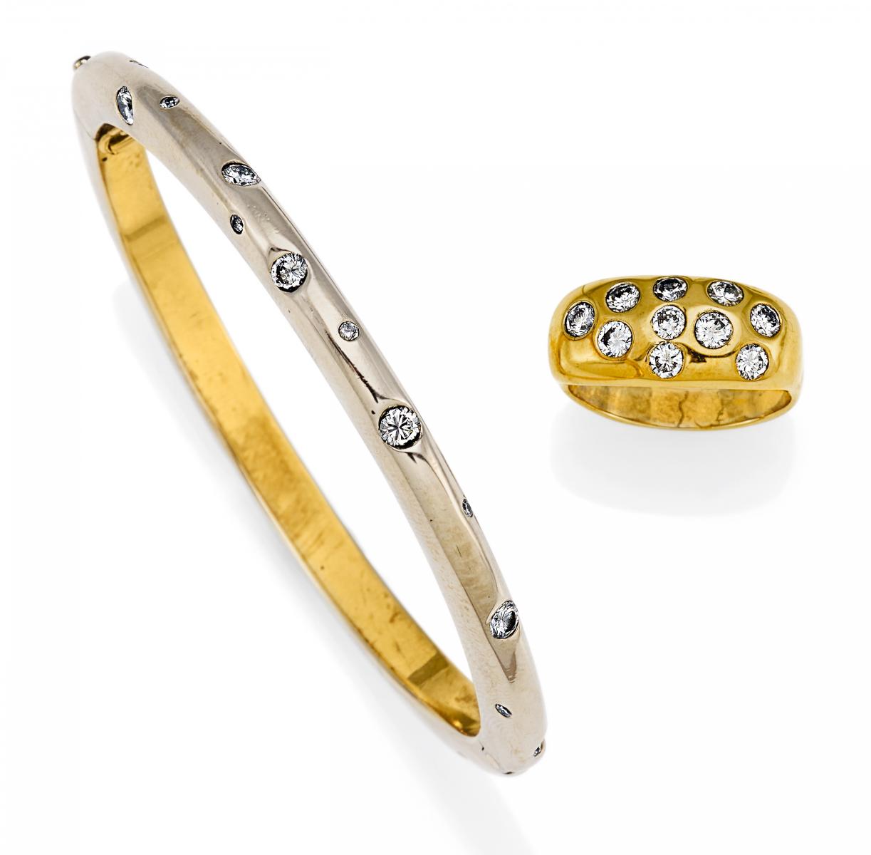 Zwei Diamanten in Armspange mit Abplatzungen.