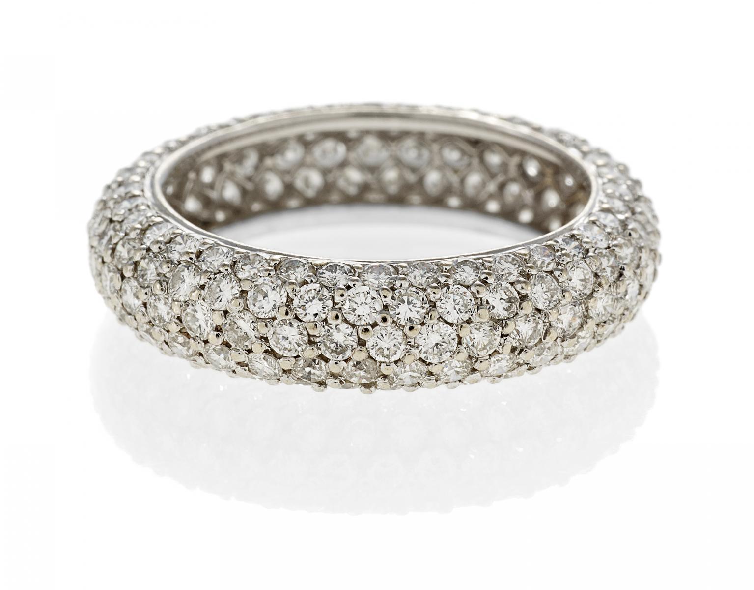 750/- Weißgold, Gesamtgewicht: 4,0g. EU-RM: 53,5. Ca. 212 Brillanten zus.ca. 1,3ct.