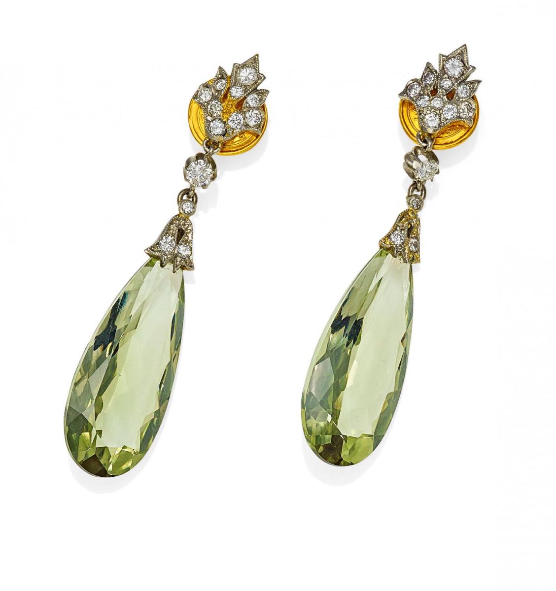 Edelsteine: 2 facettierte Prasiolith-Tropfen..