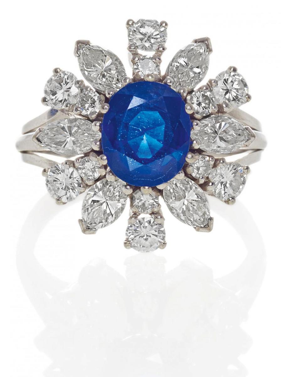 Edelsteine: 1 oval facettierter Saphir, D.ca. 8,9x7,5x4,0mm, ca. 2,3ct..