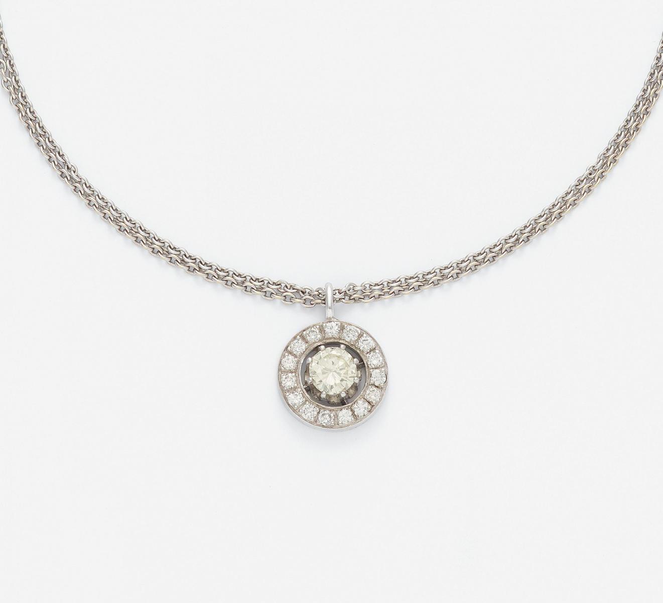 Material: Kette: 585/- Weißgold, gest.; Anhänger: Weißgold.