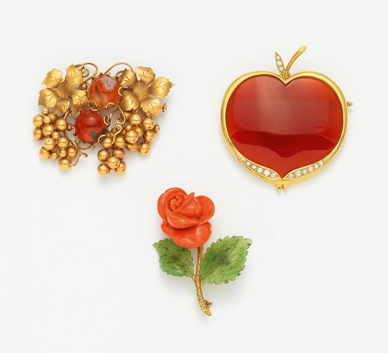 KONVOLUT: DREI FARBSTEIN-BROSCHEN.