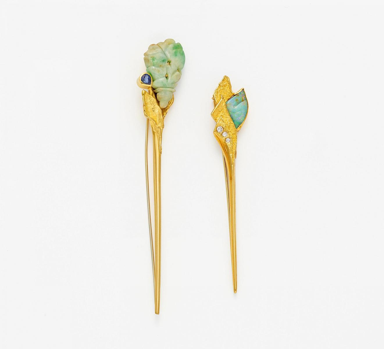 Edelsteine: 1 facettierter Saphir-Tropfen, 1 Jadeite-Platte, 1 Opal..