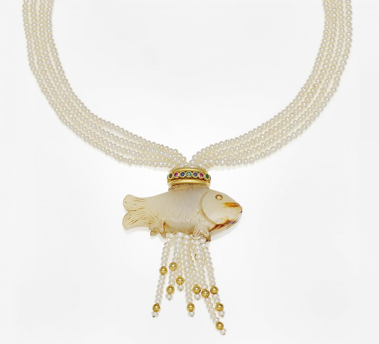 Material: Verschluss, Fassung an Fisch: 585/- und 750/- Gelbgold, gest..