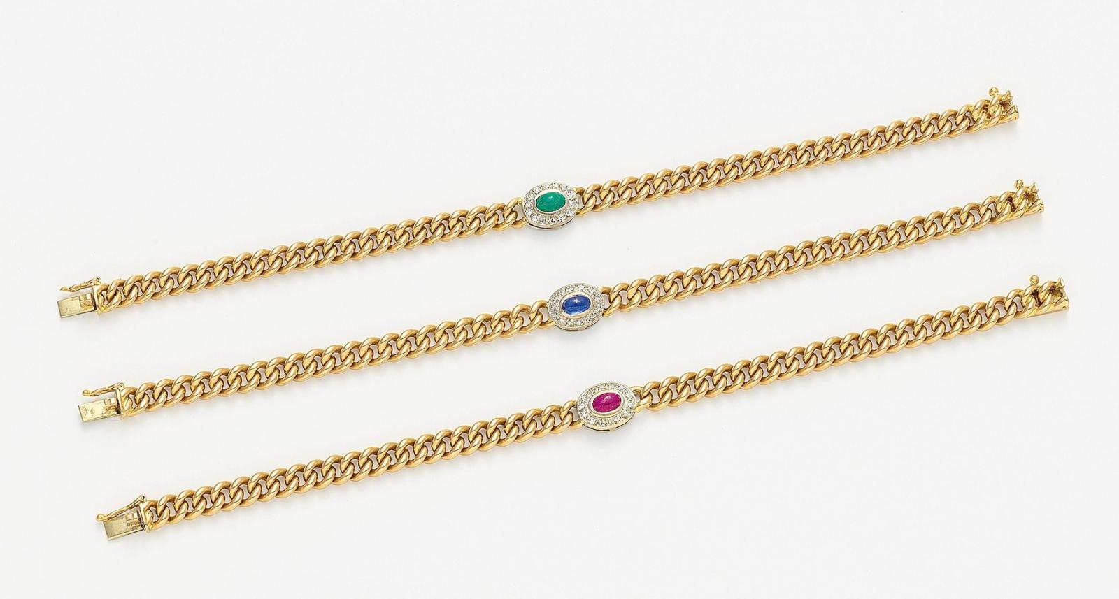 Edelsteine: 1 ovaler Smaragd-/Rubin-/ Saphir-Cabochon, mit Tragespuren..
