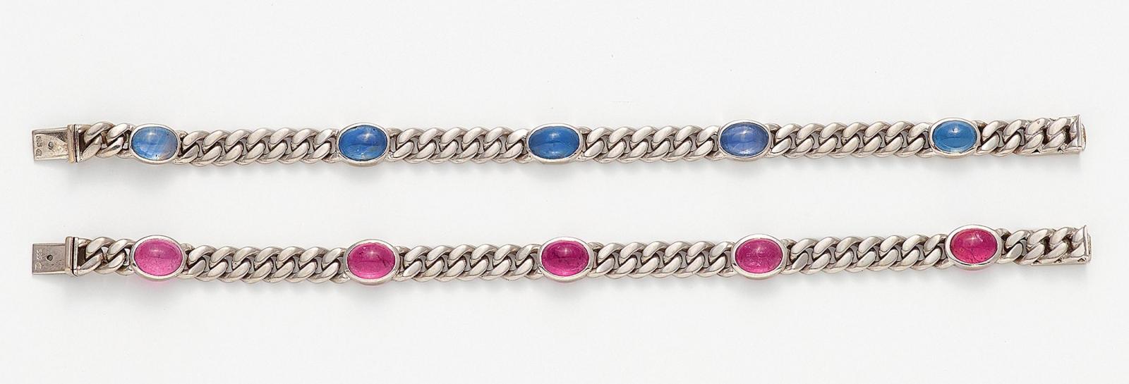 Edelsteine: 5 ovale Turmalin-Cabochons, 5 ovale Saphir-Cabochons..
