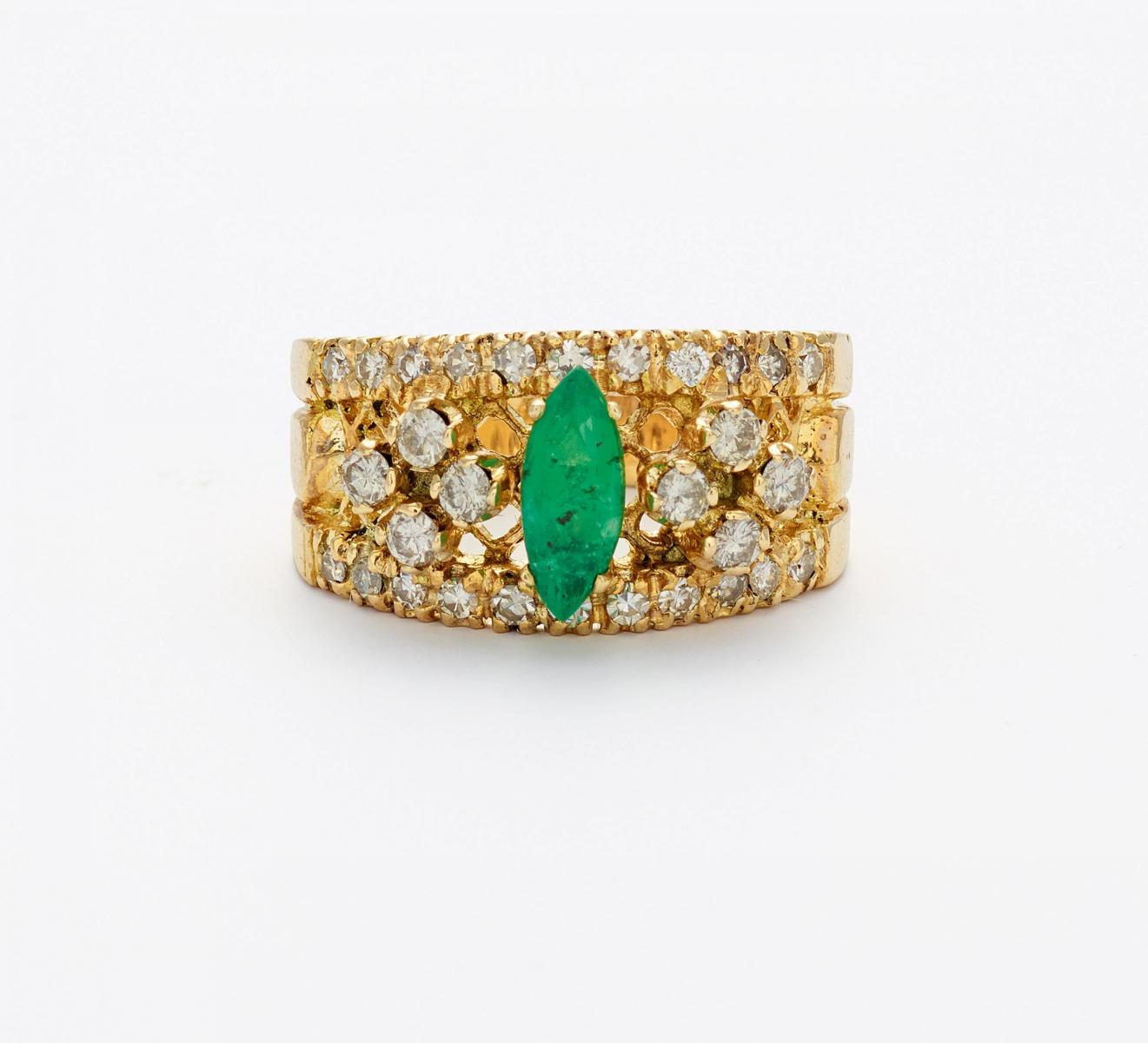 Edelsteine: 1 facettierter Smaragd im Navette-Schliff..