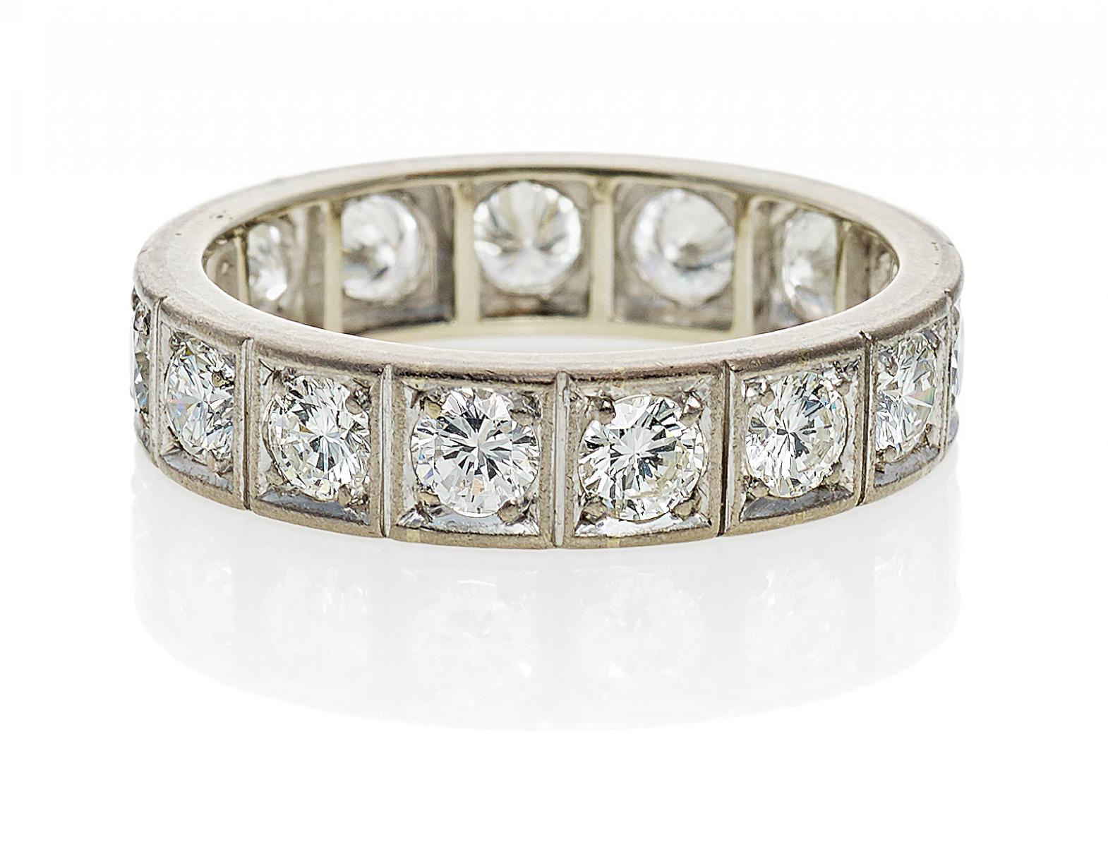 750/- Weißgold, Gesamtgewicht: 4,9g. EU-RM: 57. 15 Brillanten zus.ca. 2,4ct W(H) VVS-VS.