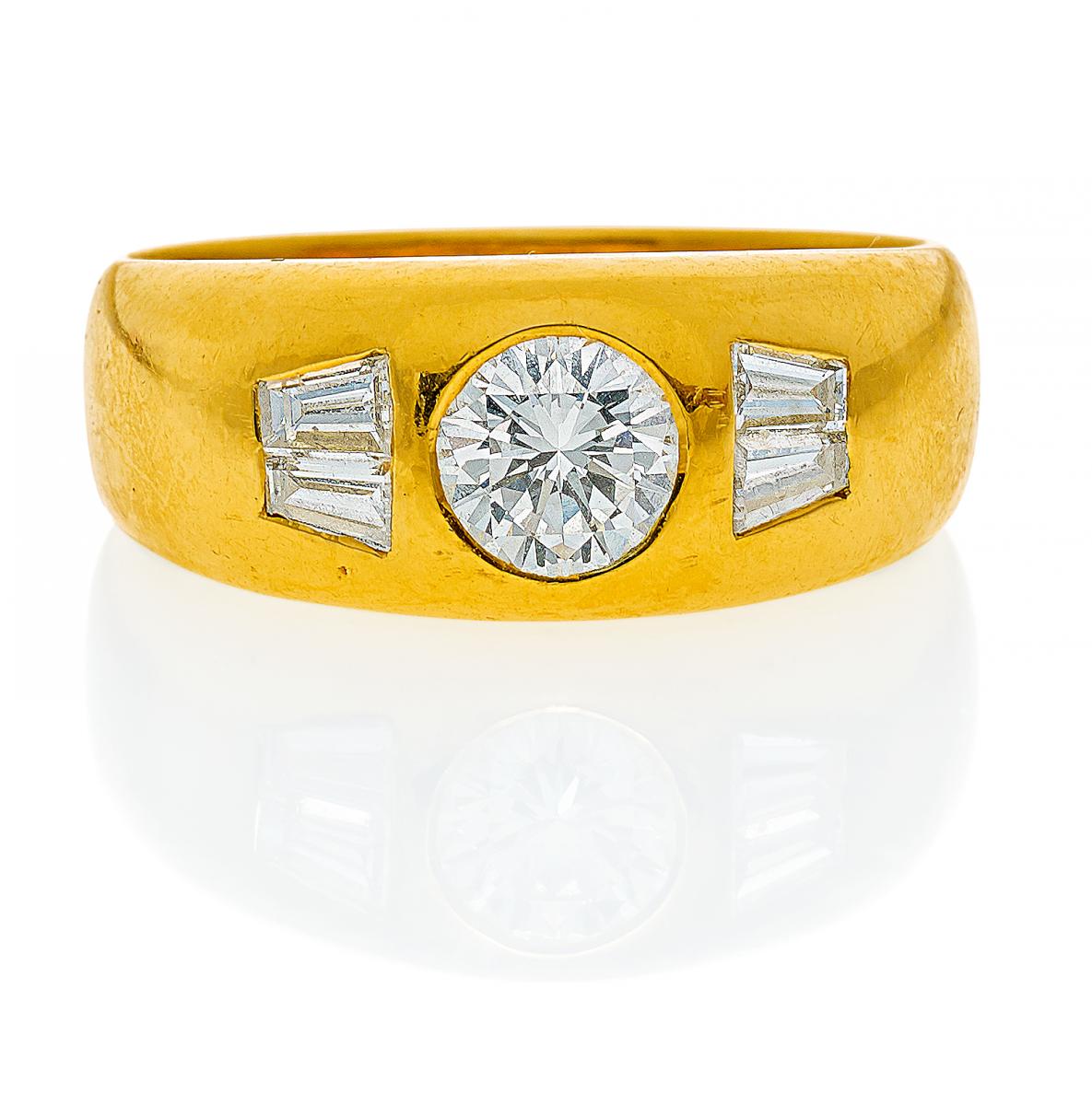 750/- Gelbgold, Gesamtgewicht: 15,0g. EU-RM: 67. 1 Brillant ca. 1,0ct W(H) VS1, 4 Diamanten zus.ca. 0,7ct.