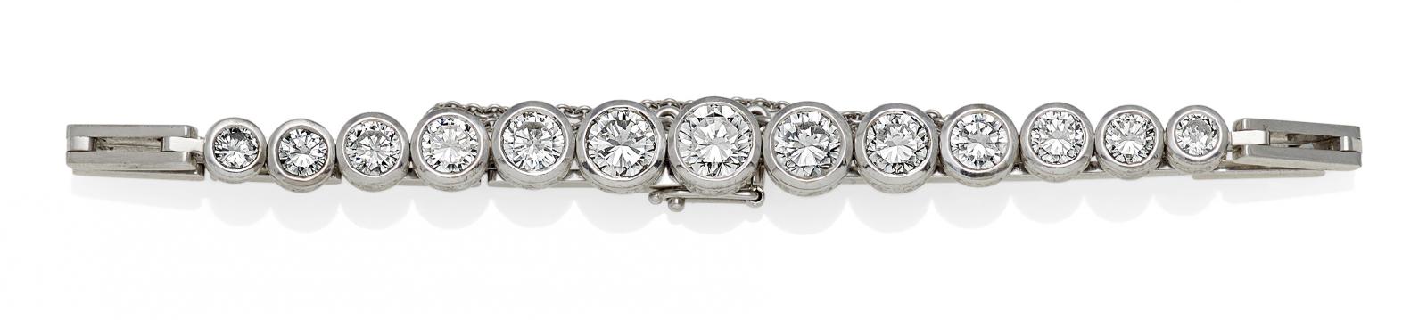 585/- Weißgold, Gesamtgewicht: 12,4g. L.ca. 18,0cm. 13 Diamanten im Übergangsschliff zus.ca. 1,4ct W-CR(H-J) VVS2-VS2.