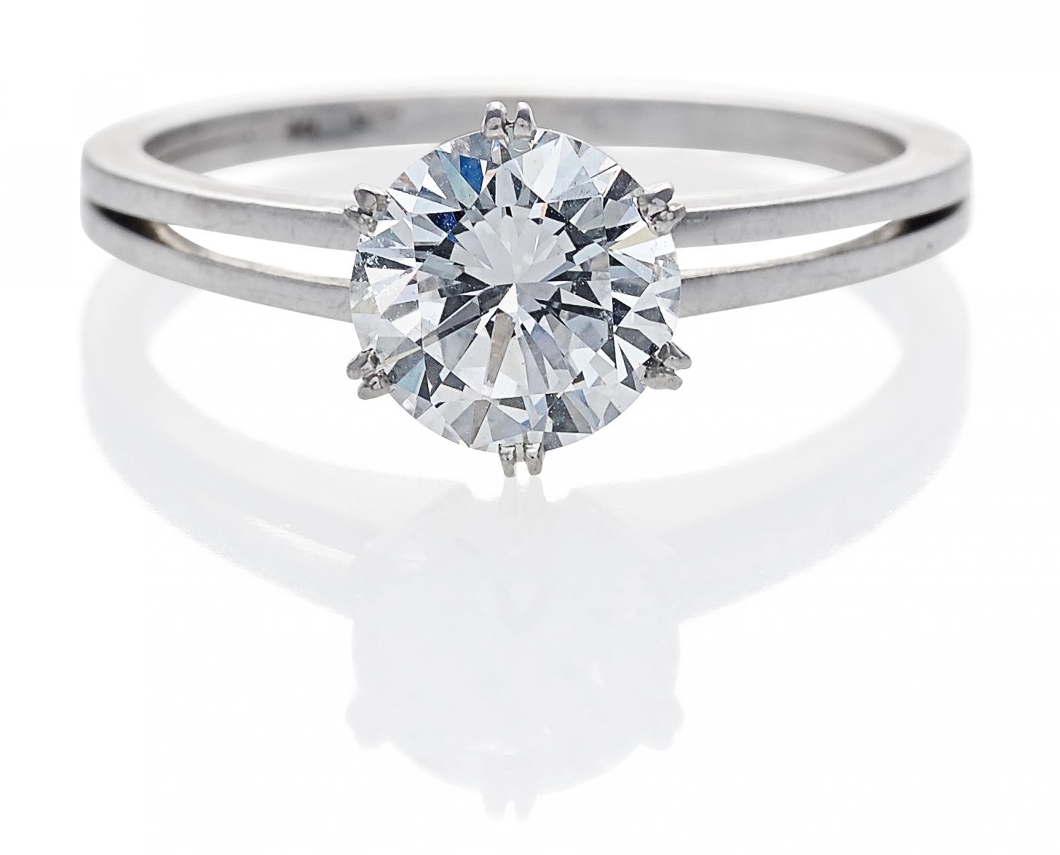 950/- Platin, Gesamtgewicht: 4,2g. EU-RM: 54,5. 1 Brillant ca. 1,4ct TW(G) VVS2.